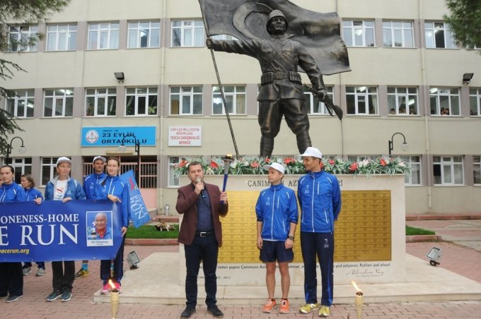 Dünya barış Koşusu etkinliği, Çan Kaymakamı Nurettin Kakillioğlu, Belediye Başkanı Abdurrahman Kuzu, idareciler ve vatandaşların katılımıyla yapıldı. Koşu, Atatürk Şehir Meydanından başladı. Dünya Barış Koşusunun Çan ayağı, Çan Şehitler Anıtı’nın önünde Barış Ağacı Dikilerek bitirildi. Koşuya, 11 yabancı sporcu katılırken, gönüllü Çan’lı sporcular da katıldı. Yabancı sporcuların, Rusya, Ukrayna, Polonya, Kırgızistan ve Çin’den katıldıkları belirtildi. Belediye Başkanı Dr. Abdurrahman Kuzu’ya, katılımcılar Meşale ve Teşekkür Belgesi verdiler. Başkan Kuzu, koşunun anlamını belirterek, ‘’ Böyle bir organizasyonun Çan’da yapılmasından çok mutluyum. Türk Milleti her zaman barıştan yanadır. İnsanlığın huzuru için, içinde barış ve sevgiyi barındıran bir dünya istiyorum. Bu etkinliğe destek veren herkese teşekkür ediyorum ‘’ dedi |