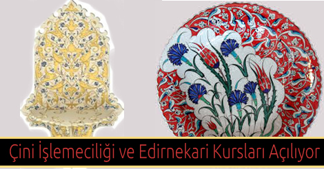 Geçmişten günümüze kadar gelen Edirnekari ve çini işlemeciliği kursları, Edirne Kültür ve Turizm Müdürlüğü’nce açılacak.
