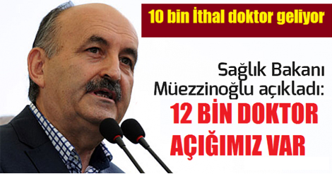 Sağlık bakanı Müezzinoğlu, 20 bin uzman doktor ve 10 bin pratisyen hekim açığının olduğunu belirterek yurtdışından doktor getirilmesinin önünü açacaklarını belirtti.