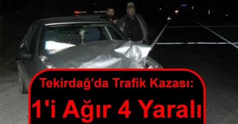 Trafik kazası, Malkara karayolunda Alaybeyköyü mahallesi civarında meydana geldi. 01 AZT 86 plakalı Gökhan Görener’in kullandığı otomobil, dikkatsiz şekilde anayola çıkınca, yolda bulunan 59 ZY 434 plakalı Mehmet Köse idaresindeki araçla çarpıştı. Yaşanan trafik kazasında sürücüler Gökhan Görener ve Mehmet Köse yanlarındaki Pelin Tuncer ve Hilal Ünal yaralandı. Vatandaşların haber vermesiyle olay yerine intikal eden ekipler, yaralılara ilk müdahaleyi yaptıktan sonra, hepsini ambulanslarla Malkara devlet hastanesine götürdüler.