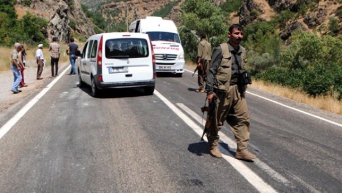 PKK’ lı teröristler yol kesmeye devam ediyor. Tunceli-Pülümür karayolunu kesen hainler Ağrı ve Erzincan’daki birliklerine teslim olmak için yola çıkan Adil Kabaklı ve Müslüm Altıntaş’ı kaçırdı.