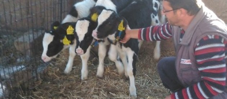 Bir batımda üçüz doğuran Holstain cinsi ineğin ve üç buzağının sağlıklarının çok iyi olduğu belirtilirken, üç buzağı da erkek oldu.