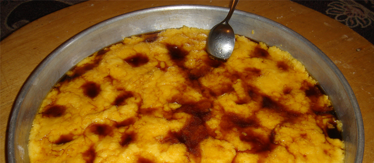 Öncelikle, 1.5 litre suyu tencereye koyarak kaynamaya bırakıyoruz. İyice kaynayan suyun içerisine tuzu atalım ve sonrasında püf noktası yavaş yavaş ve azar azar mısır ununu kaynayan suya salalım. Burada önemi olan topaklanmamasını sağlamak bunun için de tahta kaşıklı sürekli ve hızlı şekilde karıştırmayı unutmayalım. Mısır ununun salımı bittikten sonra tahta kaşığın ters yüzü ile mısır unu tencereye bastılır ve 5 dakika kaynatmaya devam edilir. Evet kaçamağımız pişti tepsiye boşaltıyoruz üzerine yakılan tereyağını gezdiriyoruz. Yalnız tereyağını dökerken, kaşığın tersiyle bastırarak dökün ki yağ kaçağın yüzeyinden tepsinin kenarlarına akmasın. Son olarak da pekmezi kaçamağın üzerine gezdiriyoruz afiyetle yiyoruz.