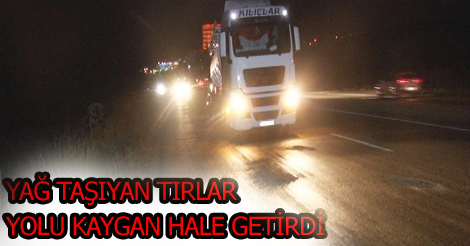 Tekirdağ-Malkara Karayolu’nda, yağ taşıyan tırlar karayolunu buz pistine çevirdi. Nebati yağ yüklü tırlar, rampalarda sarsıntıyla taşıdıkları yağları yollara dökerek gittiler.