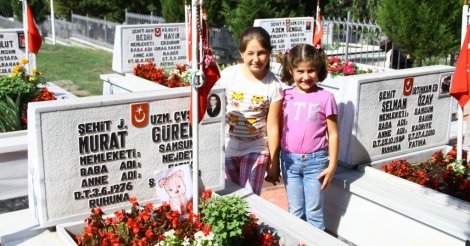 Arefe günü tüm şehitlikler vatandaşlarla dolu. Asri ve Kıranköy Mezarlıkları da şehitlerin eşleri, çocukları, anneleri, babaları, kardeşleri ile doldu taştı. Bol bol dualar edildi, Kuran’ı Kerim okundu. 2008 yılında Giresun kırsalında teröristlerce şehit edilen Jandarma Uzman Çavuş Murat Güler’in ailesi de şehidini ziyarete geldi. Şehit Murat Güler’in kabrinin başında Kuran’ı Kerim okurken, şehidin kızları, 9.5 yaşındaki Ece ve kardeşi Ezgi babaları için yaptıkları resmi babalarının mezarına bıraktılar. 7.5 yaşındaki Ezgi babasını hiç görmemişti. Çizdiği resimde babası, annesi ve kardeşi vardı.