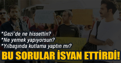 Öğretmen adaylarının mülakatta karşılaştığı sorular ise alanlarının dışında, ‘Ne yemek yapıyorsun?’ ‘Gezi’de ne hissettin?’, Terör örgütlerini sayınız?’, ‘İnsan kopyası iyi mi kötü mü?’, ‘Maç izler misin?’, Yılbaşı kutlaması yaptınız mı?’ tarzında sorular sorulduğunu iddia ettiler.