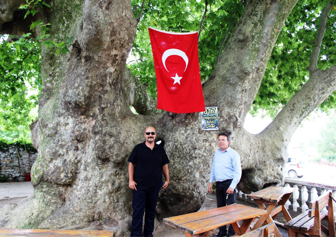 Çınar ağacının gövdesini 15 kişinin zor kucakladığını söyleyen kafe yöneticisi Hüseyin Gürsever, "Altından su geçer, gölgesi kadar kökü vardır. Belediye kanal yapmak için kazı yaptı ama kökleri meydana ulaştığı için ağaç zarar görmesin diye kazıyı bıraktı. 15 kişi kucaklayamıyor ağacı. O kadar geniş yani. Ağacın tabanında bir buçuk metre daha dolgu var. Dibi daha geniş. Tabanını belki 20 kişi kucaklayamaz" dedi.
