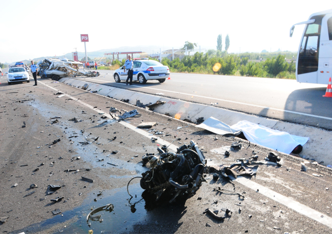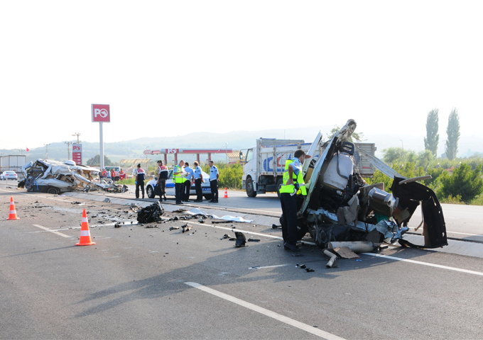 Dehşet kaza, istasyonun güvenlik kameralarına yansıdı. Kazayı saniye aniye kayıt eden kameralarda minibüsün normal seyir halinde iken aniden karşı şeride geçtiği görüldü. O sırada normal seyrinde olan kamyonun minibüse çarpmamak için manevralar yaptığı ama çarpışmayı önleyemediği izlendi. Kazadan sonra, karayolu bir süre trafiğe kapandı.
