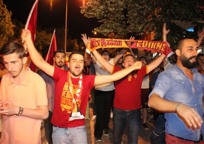 Spor Toto Süper Lig’in 33. haftasında Fenerbahçe’nin deplasmanda İstanbul Başakşehir'le 2-2 berabere kalmasıyla Galatasaray şampiyon oldu. Edirne’li sarı-kırmızılı taraftarlar 2014-2015 Galatasaray şampiyonluğunu ve 4. yıldız sevincini meşalelerle kutladı.