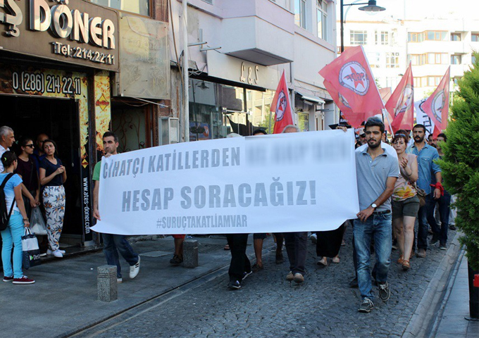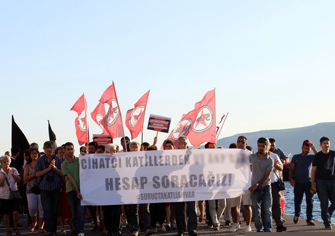HDP’li grup, kordon boyunda sloganlar atarak yürüyüş yaptıktan sonra, iskele meydanında açıklama yaptı. HDP Eş İl Başkanı Şehmus Aslan, terör olayını kınadıklarını belirtti. Grup sonra olaysız dağıldı.
