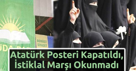 HÜDAPAR partinin ikinci olağan kongresinde, salondaki Atatürk posterini kapattı. Kuran’ı Kerim okunarak açılış yapılan kongrede İstiklal Marşı okunmadı ve Atatürk’ün posteri parti pankartlarıyla kapatıldı.