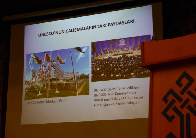 Deveci Han Kültür Merkezi’nde düzenlenen konferansta UNESCO Somut Kültürel Miras İhtisas Komitesi Başkan Vekili Doç. Dr. Ufuk Kocabaş katılımcılara UNESCO’ya yapılan başvurular ve yaşanan süreç hakkında bilgi verdi.