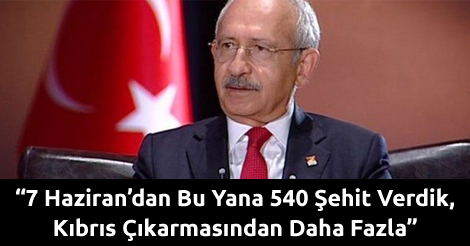 Kılıçdaroğlu, dün yaşanan İstanbul Vezneciler’deki terör saldırısı üzerinden hükümetin politikalarını eletirdi. Kılıçdaroğlu,” Neredeyse PKK’ya meşruiyet kazandırdılar. Bunlar sadece işin reklamındalar. Dış politika konusunda hükümet başarısız. Yeni düşman aranıyor. Bu kişinin de Ahmet Davutoğlu olacağı konusunda bir kanı var” dedi. Vezneciler’deki bombalı saldırıya ilişkin Kılıçdaroğlu, tüm siyasi partilerin teröre karşı net bir tavır içinde olmaları gerektiğini belirtti. Terörün artmasından siyasi iktidarı sorumlu tutan CHP lideri 7 Haziran’dan bu yana 540 şehit verdiğimizi, bunun Kıbrıs harekatından fazla olduğunu vurguladı.