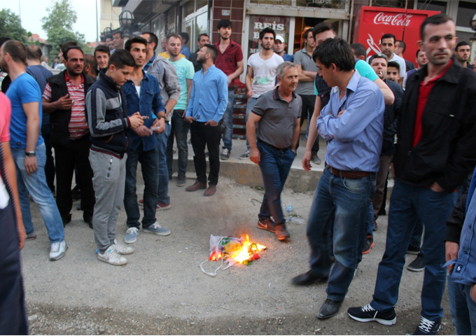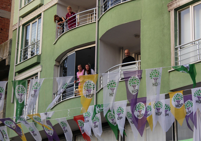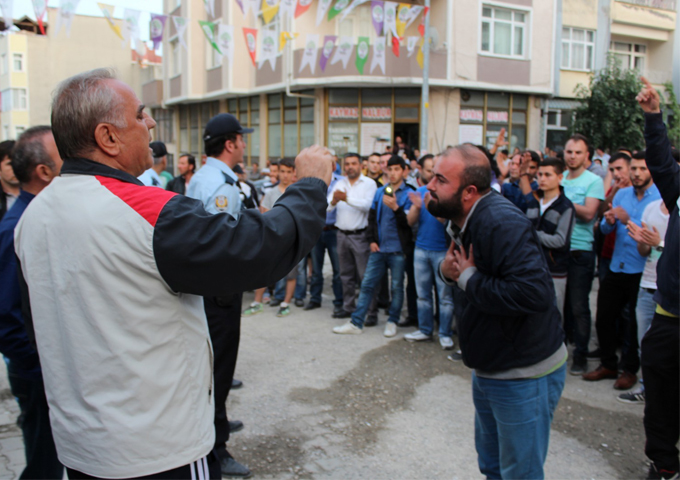 Tekirdağ'ın Saray ilçesinde HDP'nin seçim bürosu açılmasına tepki gösteren vatandaşlar slogan atarak büroyu taşladı. HDP'liler seçim bürosuna saklanırken, yaşanan gerginliği ilçe kaymakamı ve ilçe belediye başkanı sakinleştirmeye çalıştı.