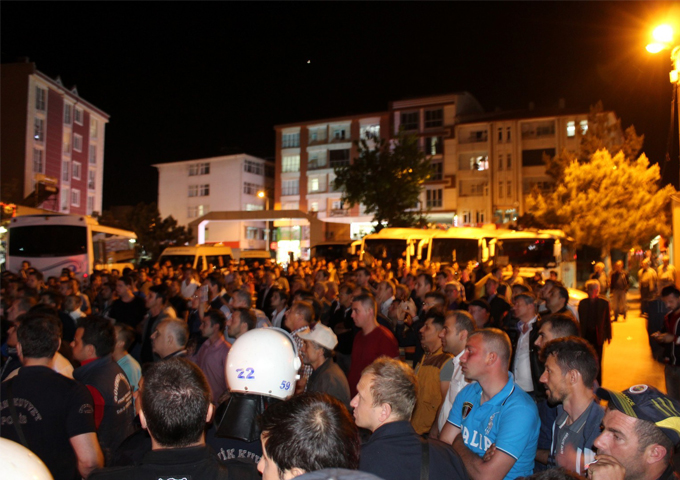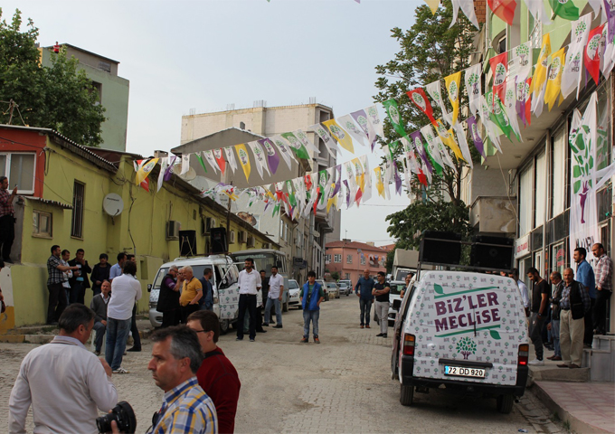 Seçim bürosuna giren yaklaşık 50 kadar HDP'li, Saray Emniyeti'nin sağladığı bir otobüse bindirilerek,güvenlik önlemleri ile ilçeden çıkarıldı. Polis ekiplerin kalabalığın dağılması için yaptığı uyarıların ardından bekleyen kalabalık dağıldı.