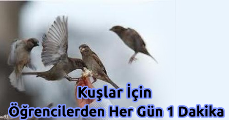 Anadolu Lisesi öğrencilerinin, ‘’ 1 dakikanı ayır, kuşlar aç kalmasın ‘’ sloganıyla yola çıktıkları uygulama dahilinde öğrenciler, soğuk kış şartları nedeniyle yiyecek bulamayan kuşlar için öğretmenleri ile birlikte yem bırakıyorlar. Tekirdağ’da, Hacı Fahri Zümbül Anadolu Lisesi müdürü Ahmet Düzgün, öğrencilerin başlattığı uygulama ile, öğrencilerin öğretmenleri ile birlikte her gün kuşlara yem verdiklerini belirtti. Okul Müdürü Üzgün, böyle bir projeyi okul öğrencilerinin gerçekleştirmesinden mutlu olduklarını belirtti. Kış aylarında olumsuz hava koşulları nedeni ile yiyecek bulamayan kuşların, aç kalmasını önlemek amacı ile uygulanan proje ile diğer okullarda öğrencilere de örnek bir davranış sergilendiği belirtildi.