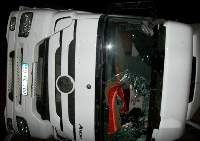 Rıdvan B. kontrolündeki 59 HC 700 plakalı büyük tır iki şeritli yolda devrildi. Yolun tamamen kapanmasına yol açan kaza, karayolunda kuyruklar oluşmasına neden oldu. Tırın sürücüsü Rıdvan B. yaşadığı dehşetle tır içerisinde mahsur kaldı. Sürücü, tırın içerisinden camları kırarak çıktı.
