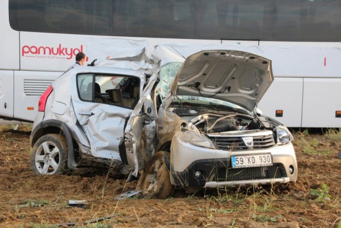 Tekirdağ Karayolunun, 13. km’ sinde, Tekirdağ Malkara yönüne doğru hareket halinde olan 35 PK 522 plakalı Y.K. kontrolündeki yolcu 930 otobüsü, 55 KD 930 plakalı Hüseyin Eriz idaresindeki otomobille çarpıştı. Hüseyin Eriz, yönetimindeki özel aracın karşı yöne geçmek istediği belirtildi. Çarpışma esnasında yolcu otobüsünün en az 50 metre otomobili sürüklediği ancak durabildiği bildirildi. Olay yerine gelen jandarma ve sağlık ekipleri intikal etti. Kazada ağır yaralandığı bildirilen Hüseyin Eriz’e, ilk müdahaleyi yaptıktan sonra ambulansla hastaneye kaldırıldı. Yolcu otobüsünde 15 yolcu olduğu ve yolcuların kazadan yara almadan kurtulduğu belirtilirken, yolcular aynı otobüs şirketine ait başka bir otobüsle gidecekleri yere götürüldü.